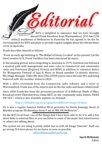 Since 2016 Frank has been the presenter/producer of A Different Shade of Blue,