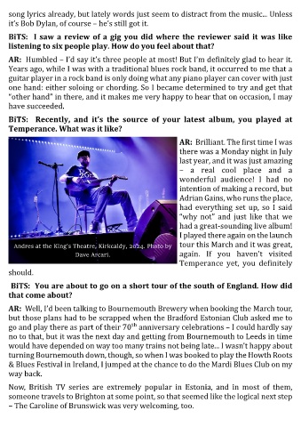 Andres at the King’s Theatre, Kirkcaldy, 2024. Photo by tour this March and it was great,