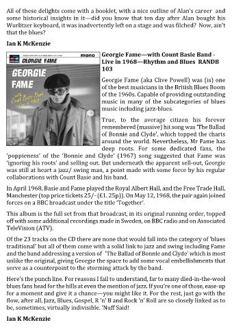 In April 1968, Basie and Fame played the Royal Albert Hall, and the Free Trade Hall,