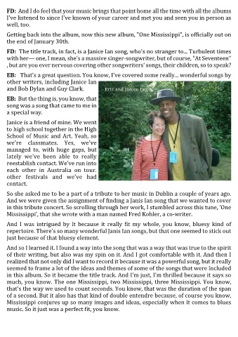and Bob Dylan and Guy Clark. Eric and Janice Ian