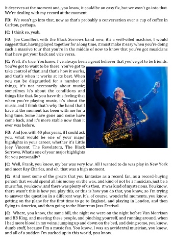 FD: Joe Camilleri, with the Black Sorrows band now, it's a well-oiled machine, I would