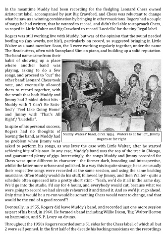 achieving hits of his own. In any case, Muddy’s band was the top of the tree in Chicago,