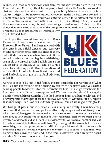 the UK Blues Federation became during my tenure. We achieved a lot. We started