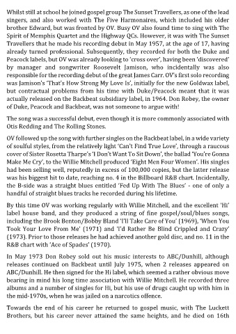 responsible for the recording debut of the great James Carr. OV’s first solo recording