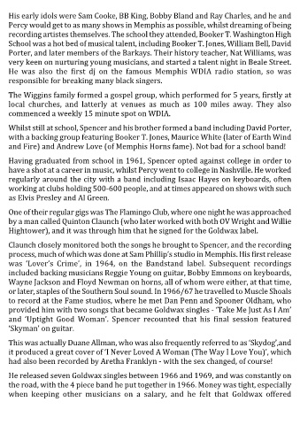 or later, staples of the Southern Soul sound. In 1966/67 he travelled to Muscle Shoals