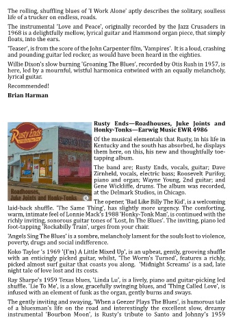 richly inviting, sonorous guitar tones of 'Lost, In The Blues'. The inviting, piano led