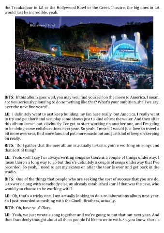 the Troubadour in LA or the Hollywood Bowl or the Greek Theatre, the big ones in LA
