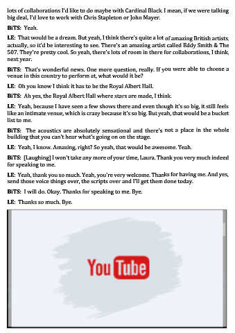 LE: That would be a dream. But yeah, I think there's quite a lot of amazing British artists,