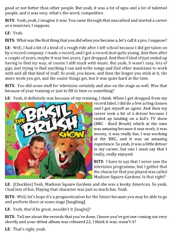 LE: Well, I had a bit of a kind of a rough ride after I left school because I did get taken on