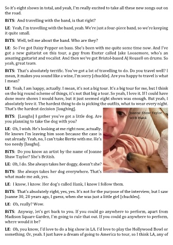 LE: Yeah, I'm travelling with the band, yeah. We're just a four-piece band, so we're keeping