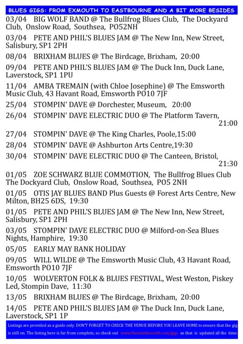 BLUES GIGS: FROM EXMOUTH TO EASTBOURNE AND A BIT MORE BESIDES