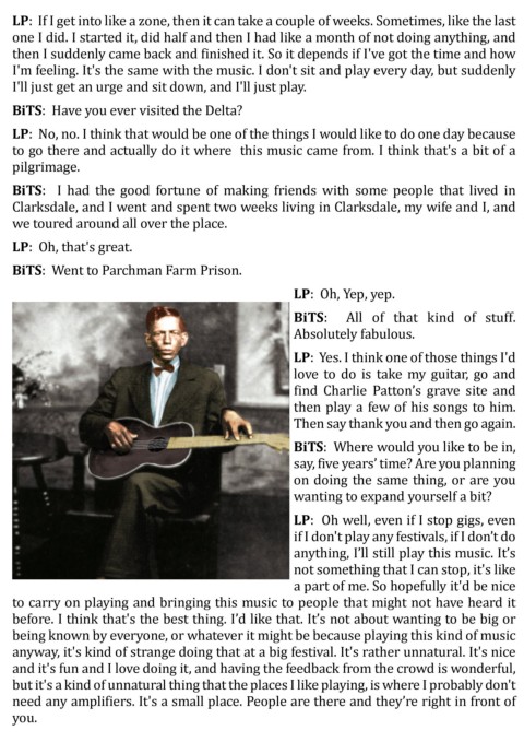 Clarksdale, and I went and spent two weeks living in Clarksdale, my wife and I, and