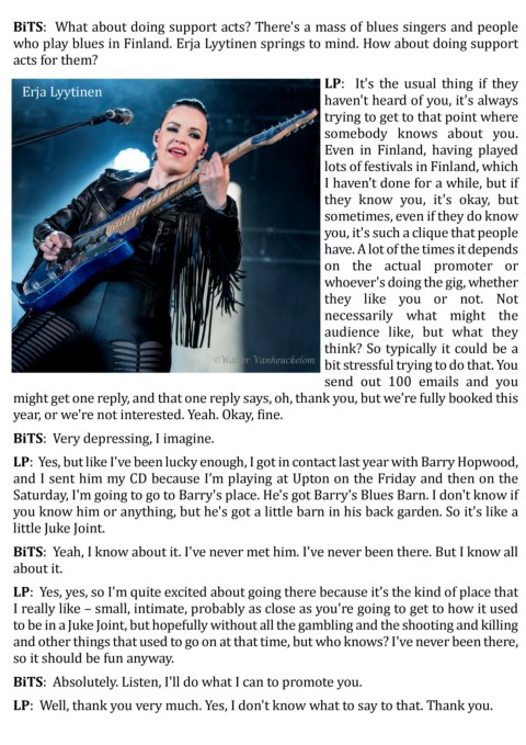 who play blues in Finland. Erja Lyytinen springs to mind. How about doing support