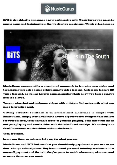 BiTS is delighted to announce a new partnership with MusicGurus who provide