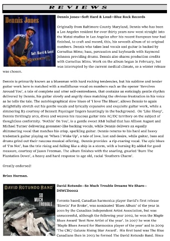 as he tells the tale. The autobiographical slow blues of ‘I love The Blues', allows Dennis to again