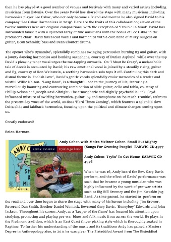 producer’s chair. David takes lead vocals and harmonica with a core band of Milky Burgess on