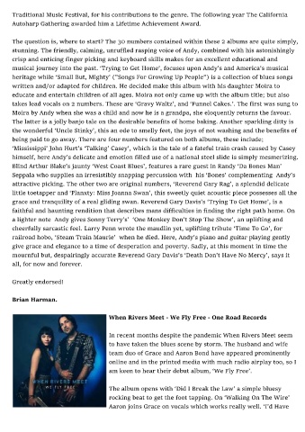Traditional Music Festival, for his contributions to the genre. The following year The California