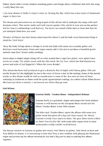 foil for Grace’s outstanding vocal delivery. The lyrics can sound a little dark at times but they let