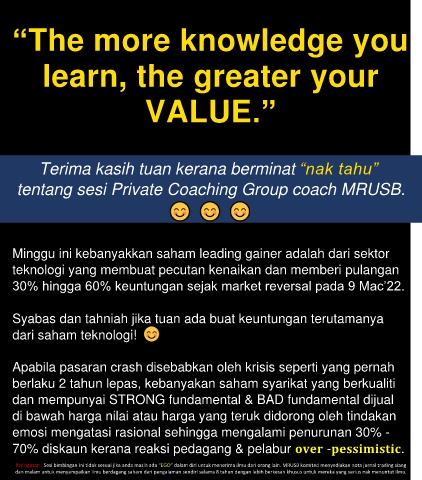 Peringatan : Sesi bimbingan ini tidak sesuai jika anda masih ada “EGO” dalam diri untuk menerima ilmu dari orang lain. MRUSB komited menyediakan nota jurnal trading siang