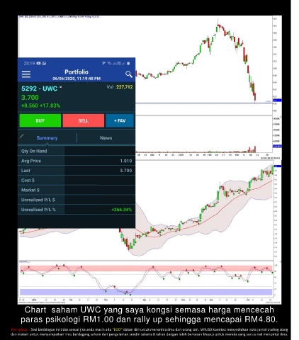Chart saham UWC yang saya kongsi semasa harga mencecah