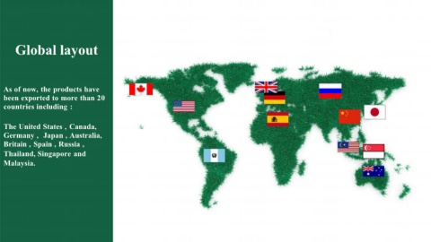 Global layout As of now, the products have been exported to more than 20 countries including : The United States , Canada, Germany , Japan , Australia, Britain , Spain , Russia , Thailand, Singapore and Malaysia.