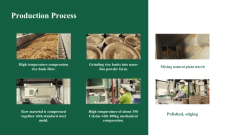 High temperature compression Grinding rice husks into nano- Mixing natural plant starch
