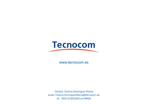 Proyectando juntos el futuro www.tecnocom.es Contact: Cristina Domínguez Rocha email: Cristina.DominguezRocha@tecnocom.es tel . 0034 913253300 ext 88626 Insert Location . Date ( 00.00.00 )