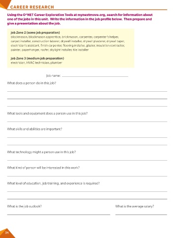 one of the jobs in this unit. Write the information in the job profile below. Then prepare and