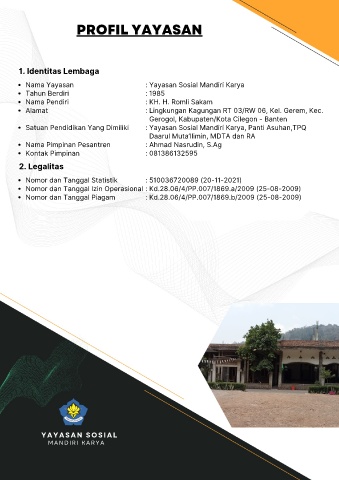 Nama Yayasan : Yayasan Sosial Mandiri Karya