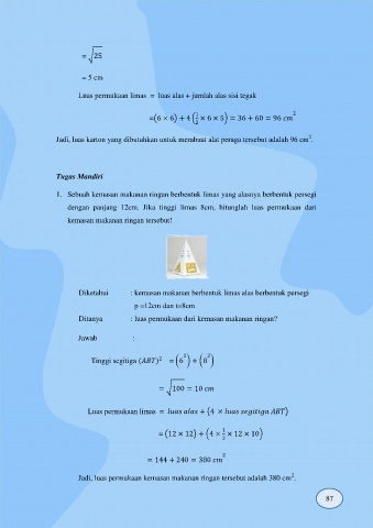Jadi, luas permukaan kemasan makanan ringan tersebut adalah 380 cm .