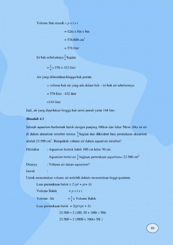 Jadi, air yang diperlukan hingga bak terisi penuh yaitu 144 liter.