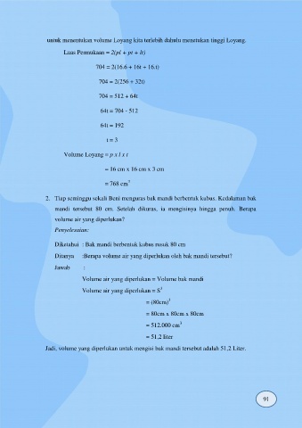 2. Tiap seminggu sekali Beni menguras bak mandi berbentuk kubus. Kedalaman bak