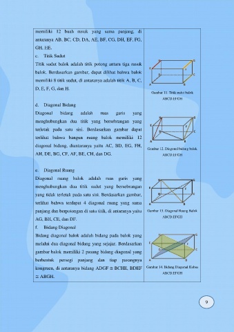 panjang dan berpotongan di satu titik, di antaranya yaitu Gambar 13. Diagonal Ruang Balok