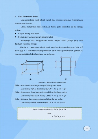 Luas permukaan balok adalah jumlah luas seluruh permukaan (bidang) pada