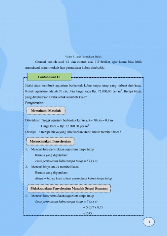 Rusuk aquarium adalah 70 cm. Jika harga kaca Rp. 72.000,00 per m . Berapa biaya