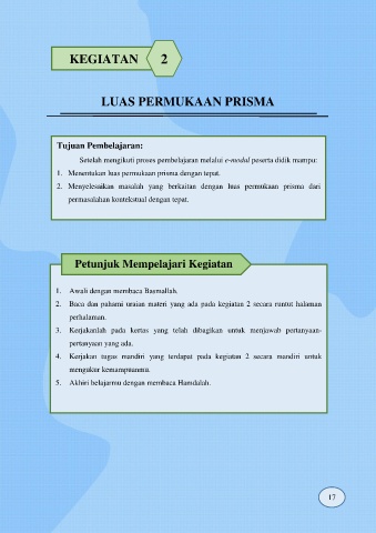 2. Menyelesaikan masalah yang berkaitan dengan luas permukaan prisma dari