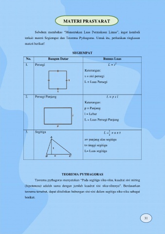 terkait materi Segiempat dan Teorema Pythagoras. Untuk itu, perhatikan ringkasan