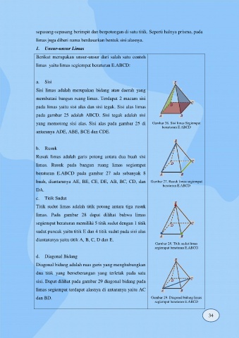 buah, diantaranya AE, BE, CE, DE, AB, BC, CD, dan Gambar 27. Rusuk limas segiempat