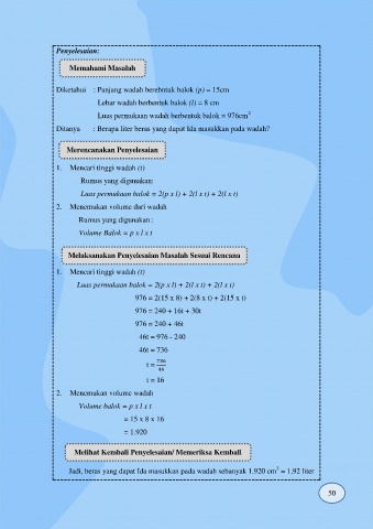 Diketahui : Panjang wadah berebntuk balok (p) = 15cm