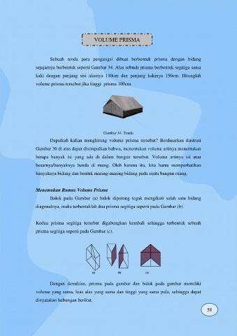 diagonalnya, maka terbentuklah dua prisma segitiga seperti pada Gambar (b).
