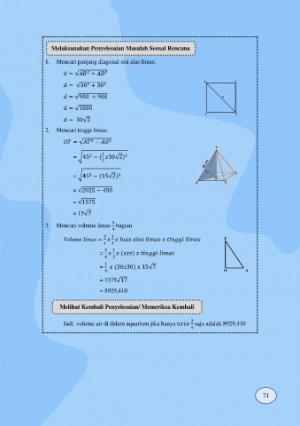 Jadi, volume air di dalam aquarium jika hanya terisi saja adalah 8929,410