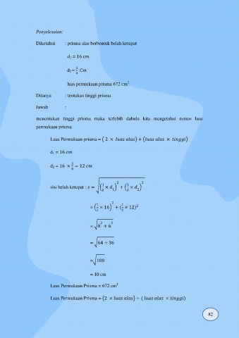 Diketahui : prisma alas berbentuk belah ketupat