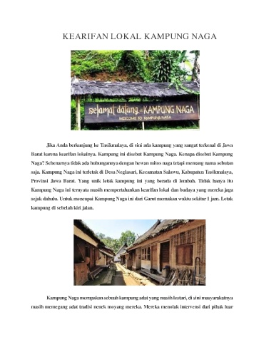 Barat karena kearifan lokalnya. Kampung ini disebut Kampung Naga. Kenapa disebut Kampung