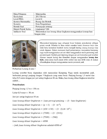 Indikator Soal : Menentukan luas lesung diluar lingkaran menggunakan konsep luas