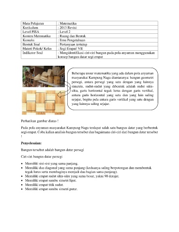 Indikator Soal : Mengidentifikasi ciri-ciri bangun pada pola anyaman menggunakan