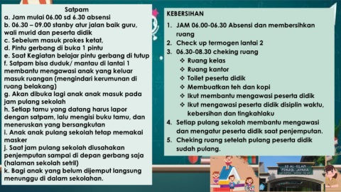 b. 06.30 – 09.00 stanby atur jalan baik guru, 1. JAM 06.00-06.30 Absensi dan membersihkan