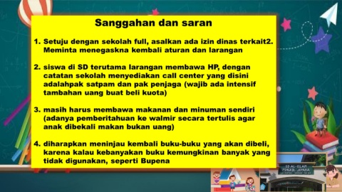 1. Setuju dengan sekolah full, asalkan ada izin dinas terkait2.