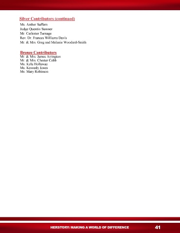 A Journey of Scholrarhip, Elegance and Grace Silver Contributors (continued) HERSTORY: MAKING A WORLD OF DIFFERENCE 41
