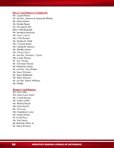 A Journey of Scholrarhip, Elegance and Grace Silver Contributors (continued) 54 HERSTORY: MAKING A WORLD OF DIFFERENCE