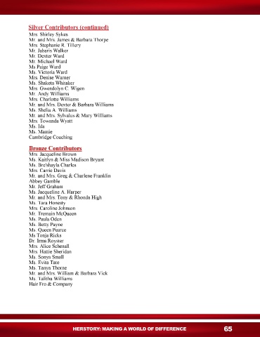 A Journey of Scholrarhip, Elegance and Grace Silver Contributors (continued) HERSTORY: MAKING A WORLD OF DIFFERENCE 65